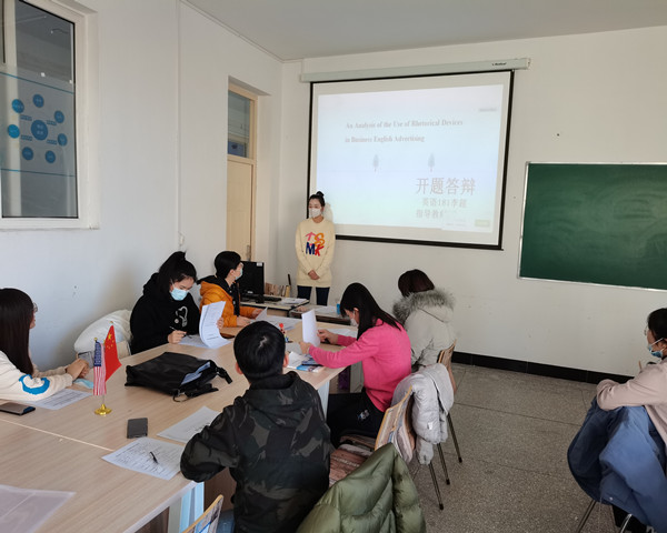 12月16至17日,管理工程系英语专业在三号教学区1309室举行了毕业论文开题答辩。康琦、齐锐、曹献玲、孙伟、李哲等教师担任此次答辩的指导教师,英语专业2018级全体毕业生参加。学生通过PPT阐述毕业论文的思路、内容,指导教师根据学生叙述内容进行提问,同时指出开题设计中的不足。答辩后,学生和指导教师相互沟通,对毕业论文开题报告进行修改。毕业论文是实现人才培养目标的重要环节之一,是训练学生科研能力的有效途径。该系英语专业高度重视此次毕业论文开题答辩工作,也为后续毕业论文写作顺利开展和高质量完成提供了有力保障。