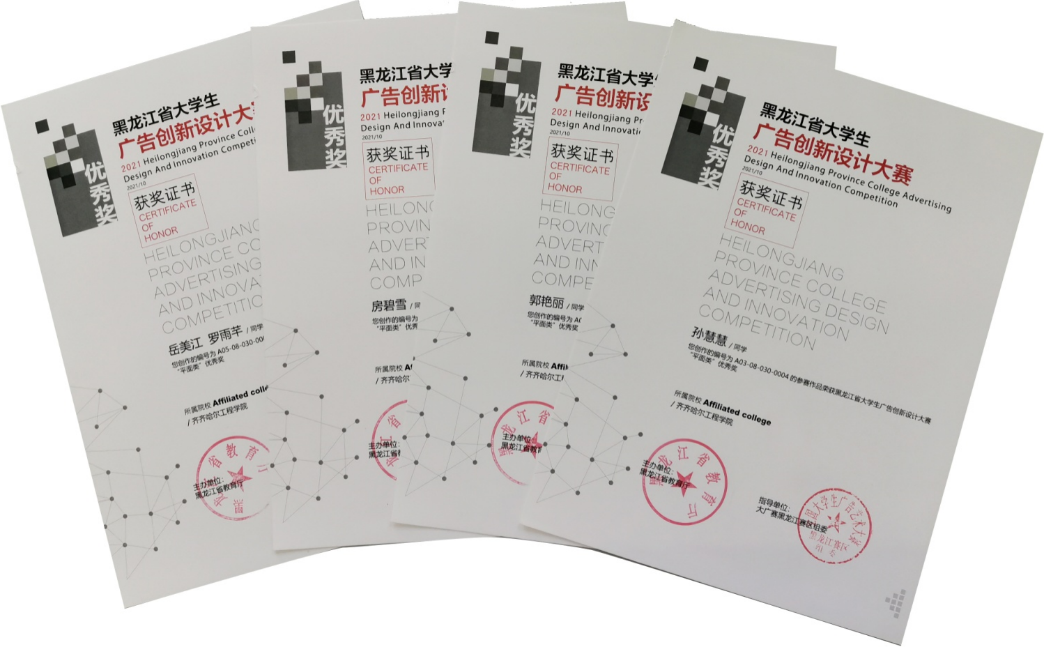 近日,全国第十三届大学生广告艺术设计大赛奖项揭晓,伟德官网信息工程系视觉2019级孙慧慧、房碧雪和视觉2020级郭艳丽、岳美江、罗雨芊五名同学的作品入围省赛并获得优秀奖。