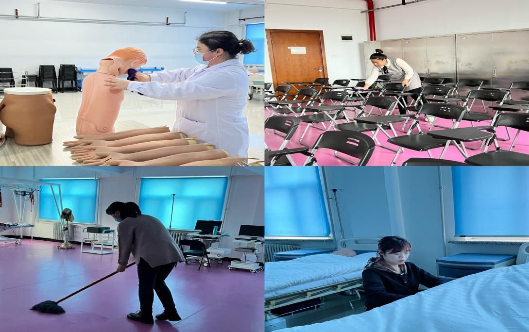 自3月1日起,大健康教育实训教学中心开展了2021-2022学年度第二学期开学前的准备工作。为保障新学期开学顺利,实训室各楼层全体人员对实训室进行卫生大扫除,实训设备等摆放整齐,为新学期营造好整洁舒适的实训环境;严格排查水、电存在的各种安全隐患;根据本学期实训室实验教学计划和任务需求,提前做好实训耗材的分析统计汇总工作,以确保各项实训教学任务顺利完成;大健康教育实训教学中心主任张晓波、实训指导教师赵佳宝联合任课教师单大海对示教室电子示教设备及教学软件开展全面检查及调试,并根据课程团队式学习模式,将桌椅按圆桌团队式摆放,以适合课程需求,保证开学后教学工作能够顺利进行。大健康教育实训教学中心全体人员继续坚持以服务教学、服务师生为中心,更新服务理念、创新服务方式,扎实全面做好新学期的各项工作。