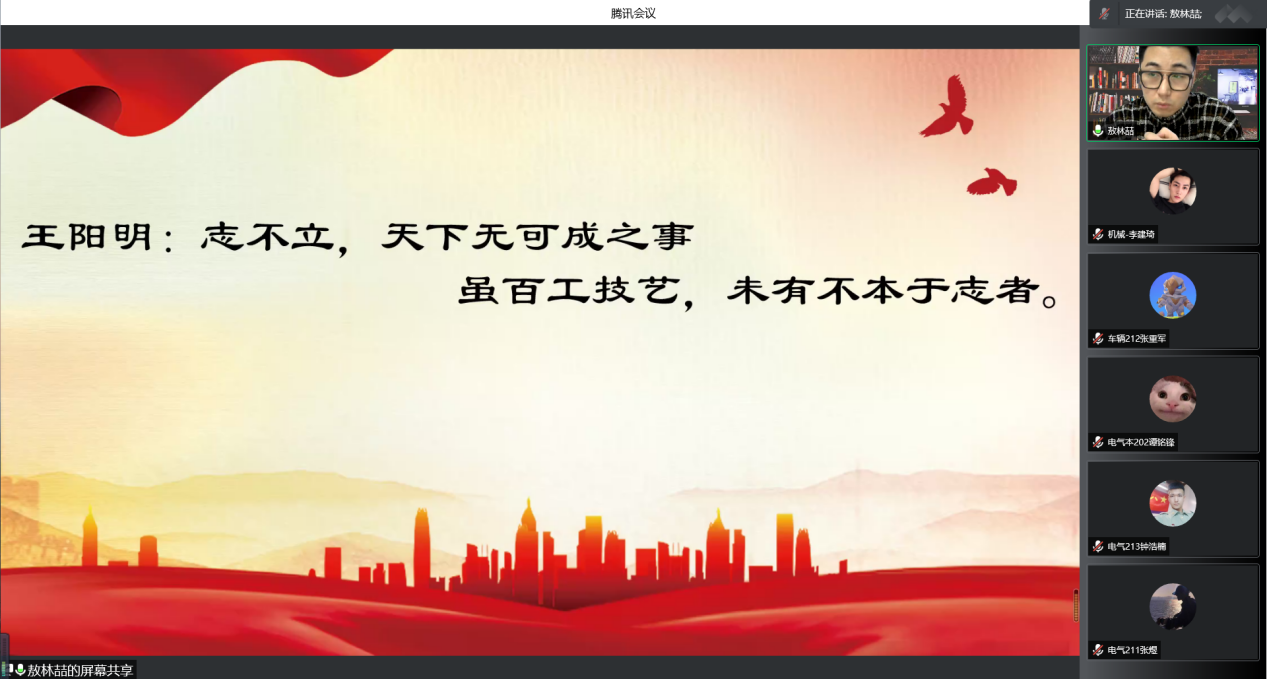 4月5日17:00,机电工程系机械专业教师党支部书记敖林喆通过腾讯会议开展“端正入党动机,坚定理想信念”专题讲座,对2022年上半年入党积极分子进行培训。