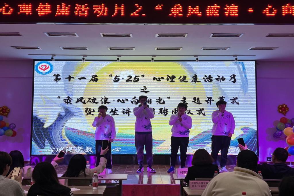 心理健康中心负责人、大学生心理发展协会指导教师付东双老师诠释“5·25”健康日谐音“我爱我”之意,以及 “乘风破浪·心向阳光”主题的内涵,希望同学们迎着阳光,勇往直前。“心协”成员们信心满满,表示要齐心协力开展一个别样的心理健康活动月。