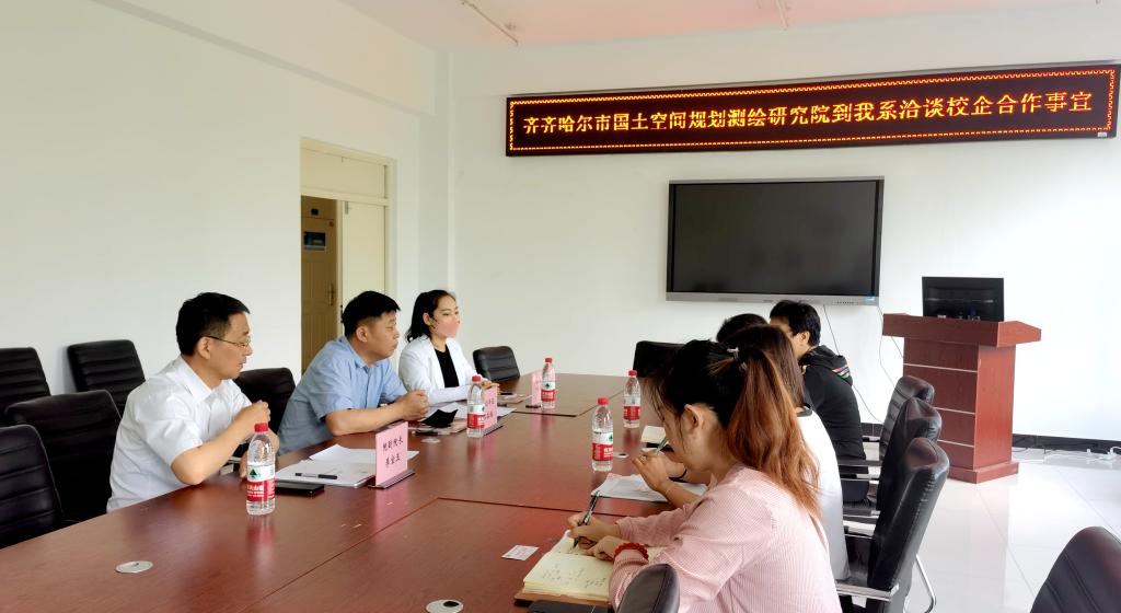 6月16日上午,建筑工程系在二号教学区2409会议室与齐齐哈尔市国土空间规划测绘研究院召开产业学院建设推进会。系主任陈景鑫、教学副主任徐明、工程管理专业负责人曲梦露、专业教师李智慧,以及测绘研究院院副书记石善福、院副院长李宝玉、校企合作负责人张健参会。
