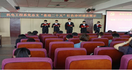红歌诗词朗诵会的开展,丰富了师生的精神文化生活,激发了机电工程系全体党员“感恩党、爱祖国、谋发展、加油干”的信心和决心。他们表示,历史不能忘,革命不能忘,要多阅读红色经典,领悟革命精神,传承红色文化,用更加优异的成绩向党的101华诞和二十大献礼。