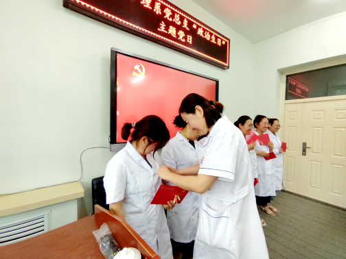 活动中,张苗带领全体党员庄严宣誓,重温入党誓词,并为过“政治生日”的党员赠送生日贺卡、党章,佩戴党徽。