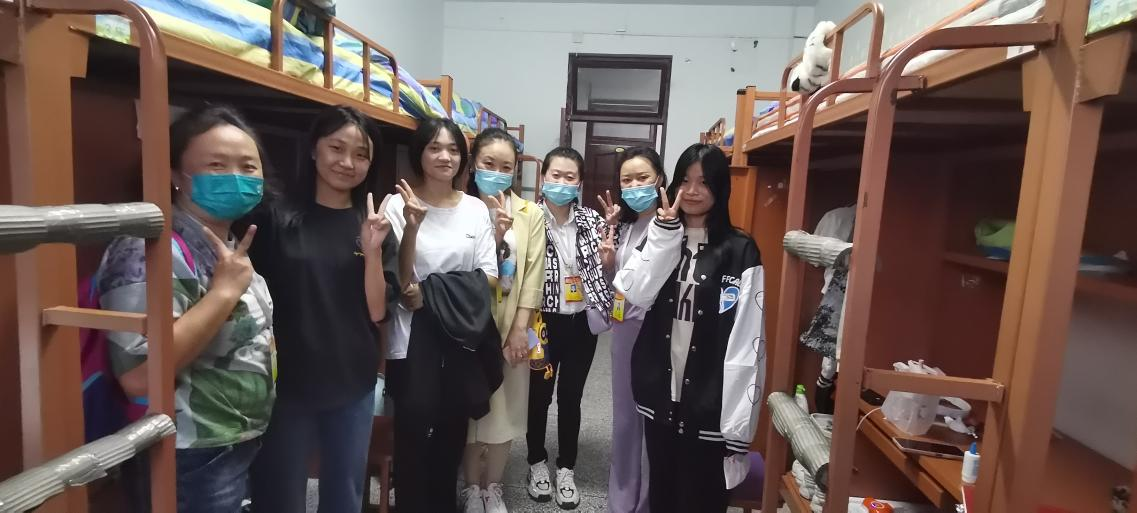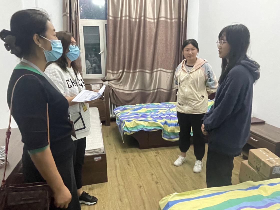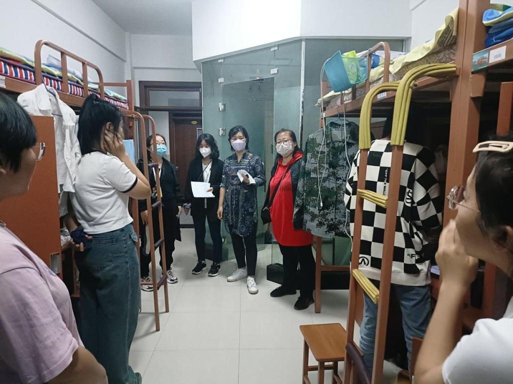 陈主任一行深入学生寝室,了解新生入校后情况,询问新生在入住学校后有哪些意见和建议,在生活、学习上是否存在困难。