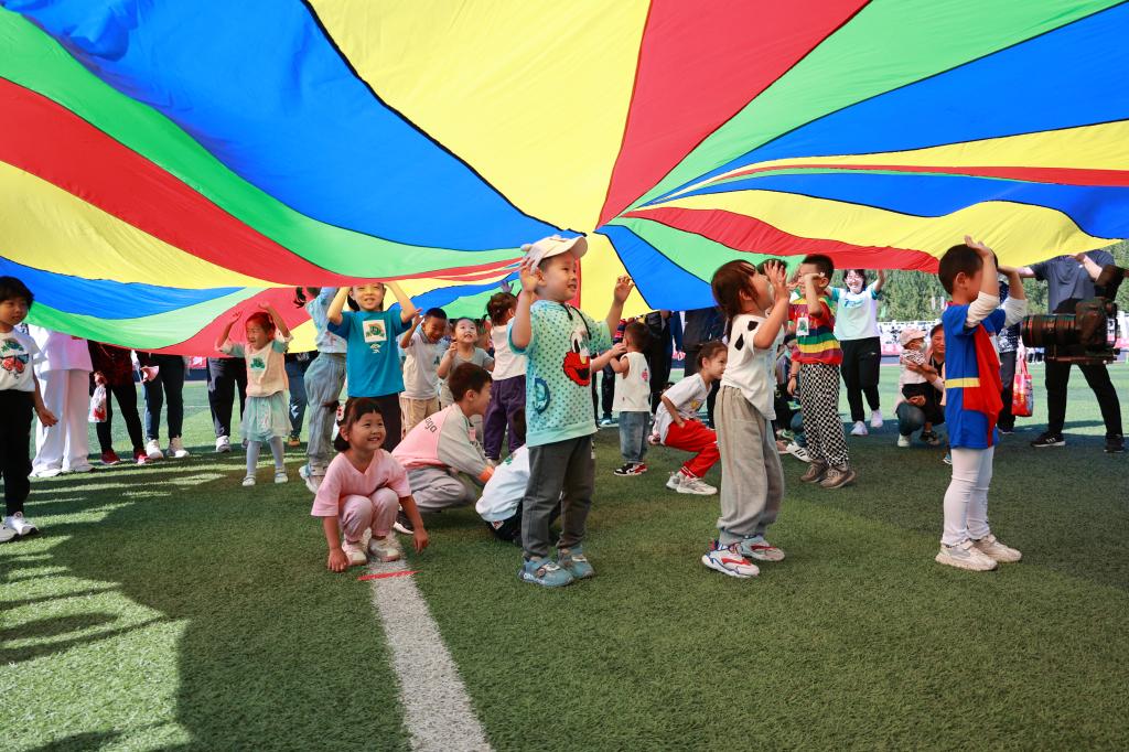 吉祥的伞盖下,传出了孩子们的欢声笑语;“青蛙过河”让孩子们兴奋不已;“投掷沙袋”让孩子们欢呼雀跃。孩子们在家长们的陪伴下,比赛投入,各个兴高采烈。有趣又互动性强的亲子运动,温馨有爱,感染着每一位家长和宝贝们。陪着孩子玩的家长们,也仿佛回到自己欢乐的童年。