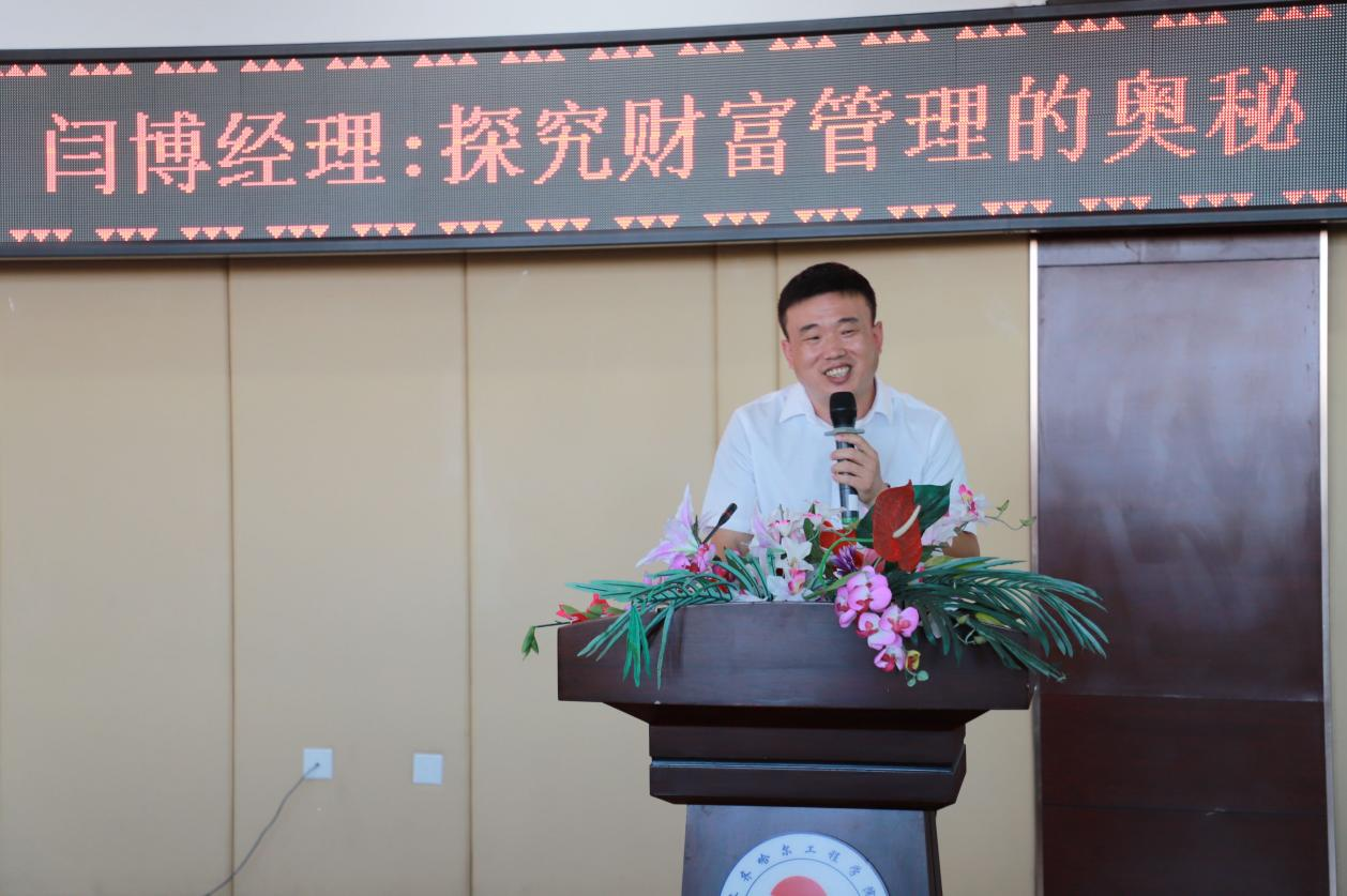 在题为《探究财富管理的奥秘》的专题报告中,闫经理从金融行业简述、金融学专业就业前景、就业方向和金融业未来发展趋势三个方面对学生进行讲解,并与现场学生围绕银行、保险、证券三个方面进行了交流。