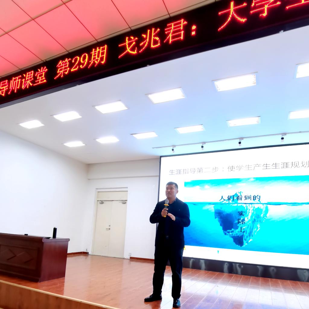 10月6日下午,学生发展中心在二号教学区2508室第29期生涯导师课堂开课,邀请齐齐哈尔大学心理健康中心咨询师戈兆君作《大学生生涯指导及心理健康工作技巧》讲座。学生发展中心负责人康静,以及154名生涯导师、辅导员参加,逯娅娜老师主持。