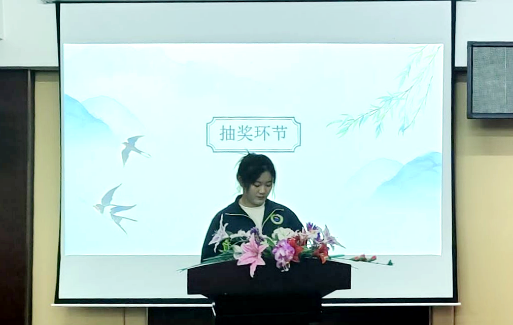 随后,选手们分三组,依次上台分享自己喜欢的书籍;每组选手分享完,即为观众抽幸运奖,送出精美礼品。机械221班苏金慧向同学们推荐了名为《人间告白》的书籍,介绍了书籍的内容,讲述了关于自己的读书心得,令其感动的一句话:“岁月辽阔,因为有你,人间值得。”她说:“这句话告诉大家,要珍惜当下,即使遭遇不幸,也依然要鼓起勇气,砥砺前行,重新燃起对生活的热忱。”电气221班辛佳芮同学推荐的是《追风筝的人》,其中一句“你认真地对待生活,生活也会认真地对待你”让同学们印象深刻。