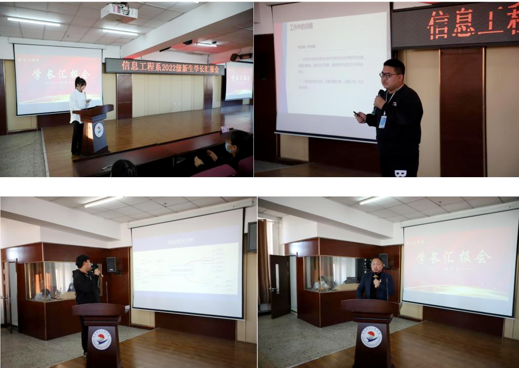 11月20日晚,信息工程系2022级新生学长汇报会在图书馆501报告厅召开。系学生工作副主任孙晓芳,兰天月、刘阳、陈明月、李红老师及新生学长共80人参加汇报会,视觉201班荆晓娜主持。
