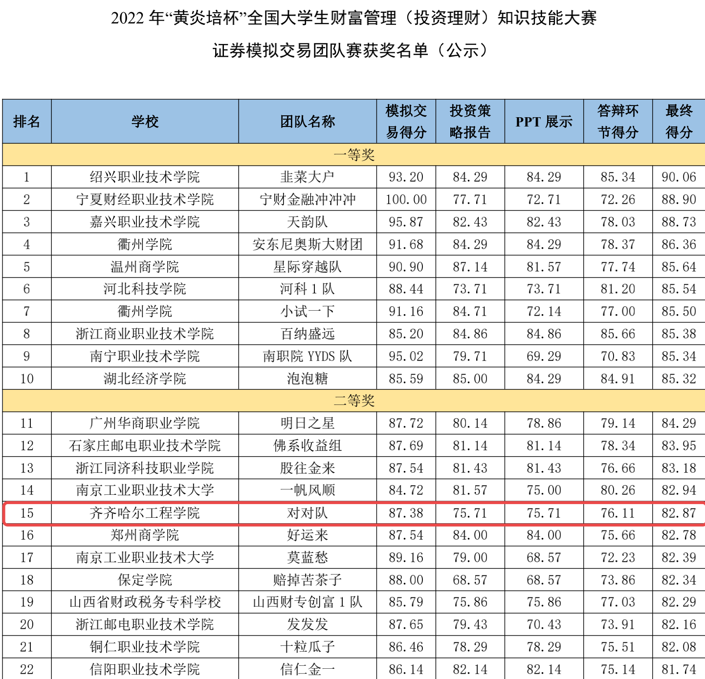 近日,2022年“黄炎培杯”全国大学生财富管理(投资理财)知识技能大赛组委会传来喜讯:伟德官网斩获团体赛二三等奖和两项个人三等奖,三人获优秀指导教师荣誉。