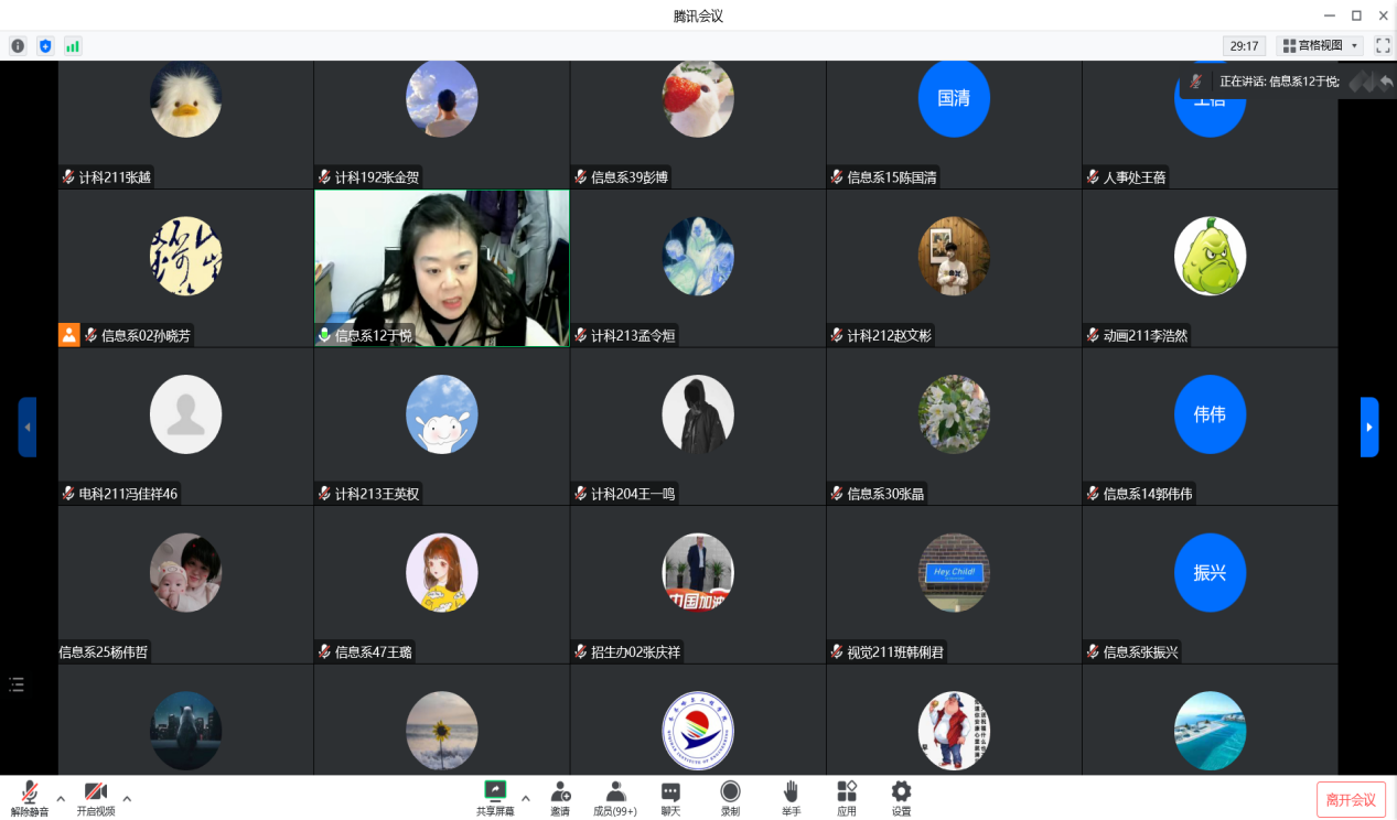 1月9日下午,信息工程系线上召开第四学期启动仪式。系主任刘春媛、学生生涯导师、辅导员、学生党员、学生干部、学长共160余人参加,学生工作副主任孙晓芳主持。