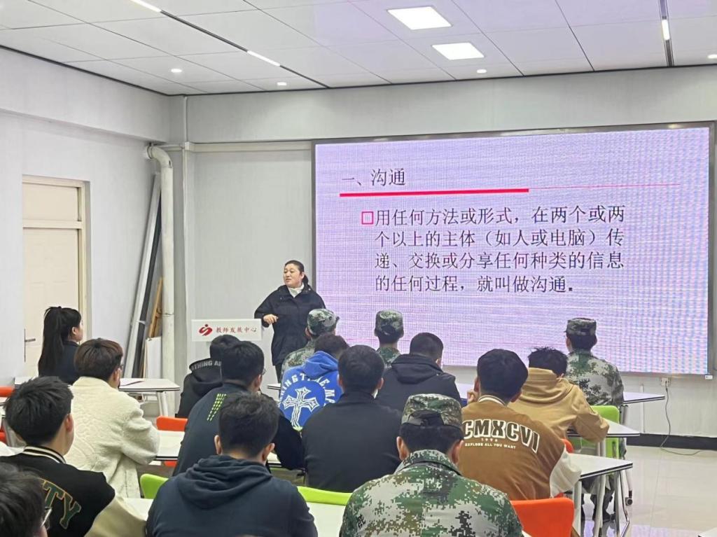 校团委书记郭明敬以《沟通从这开始》为主题进行讲座。她运用两段视频,讲述了沟通的重要性,表示沟通无处不在,许多问题都需要进行沟通;强调班长不仅仅是一班之长,同时也是班级建设的重中之重;希望同学们能积极参加社团活动,成为志愿者,珍惜第三、四学期社会实践的机会,培养沟通能力,争做四有青年。