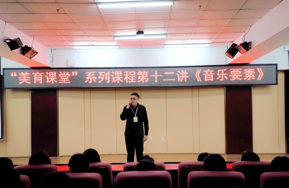 3月29日晚,基础部陈鑫然老师在第12期“美育课堂”上作题为《音乐要素》讲座,围绕什么是音乐和表演媒介进行深入讲解,使学生了解到音乐是如何作为声音世界的一部分存在,如何辨别男女声的不同音区,以及各类西方乐器。陈老师还为学生播放了各种乐器声音的视频,并对相应乐器进行介绍。