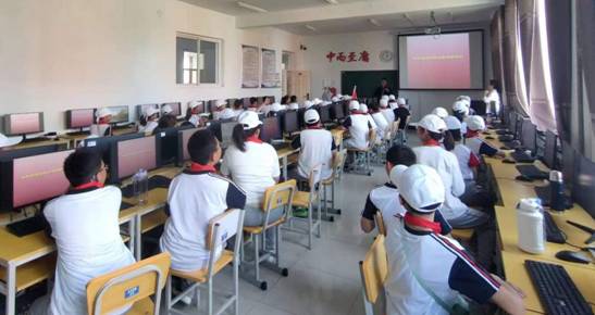 明媚的阳光下,红领巾们打着少先队队旗,整齐着装,在老师的带领下步入学校明德广场,在志愿者的带领下游览校园,感受校园文化的独特内涵。