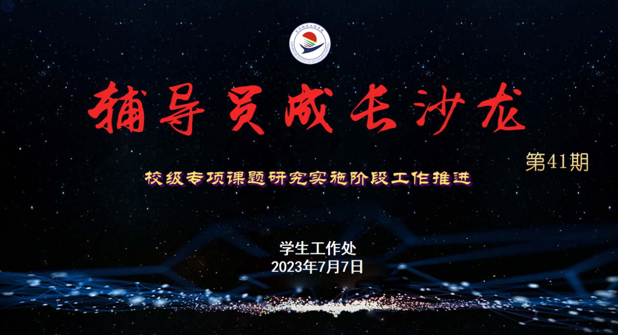 7月7日上午,学校第41期辅导员成长沙龙在二号教学区2102会议室举行。此次沙龙面向学工专项课题负责人及成员,采取线上线下相结合的方式进行,邀请科研处宋庆永老师为大家讲解了校级专项课题(学生工作专项)研究实施阶段工作推进的要求及相关内容。