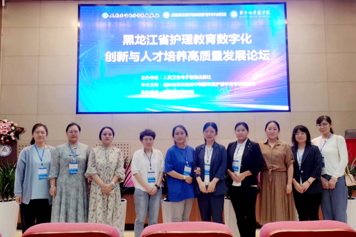 7月15日,健康与护理系10名教师参加由人民卫生出版社主办,齐齐哈尔医学院承办,虚拟仿真实验教学创新联盟护理学类专业委员会提供学术支持的黑龙江省护理教育数字化创新与人才培养高质量发展论坛,目的在于加强教师队伍建设,提升教师综合素质。