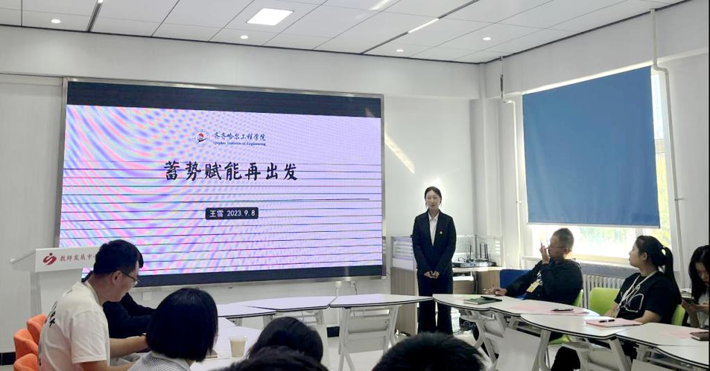 健康与护理系王雪老师以《蓄势赋能在出发》为题进行分享。她把与学生在一起的点滴做成了小视频进行展示,从与一名学生的故事讲述了自己的工作体会,对自己工作中存在的问题列举,并找到解决措施。王老师对自己的班级进行了建立班级骨干机制,表示要加强竞赛育人、活动育人,对行为规范和家校沟通方面也要做得更好。
