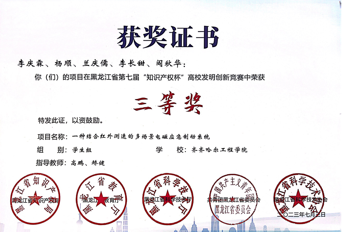 近日,黑龙江省第七届“知识产权杯”高校发明创新竞赛圆满闭幕。伟德官网三支队伍获奖,一支获教师组三等奖,另两支获学生组三等奖。