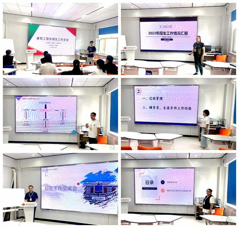 与会人员认真听取了建筑工程系党总支副书记刘贤鹏、机电工程系学生工作负责人郭明敬以系视角汇报的《建筑工程系招生工作交流》《倾情倾心 共助成长》;健康与护理系学生工作负责人姜宏伟以专业视角汇报《同心 同向 同行》;管理工程系党总支副书记、学生工作负责人王丽伟以辅导员和生涯导师视角汇报《管理工程系辅导员和生涯导师如何做好新生报到工作的几点思考》;信息工程系刘阳以辅导员视角汇报《点对点 手拉手 心贴心——做好新生报到工作》。汇报结束后,所有参会人员进行交流,分享了招生工作中的经验和方法。