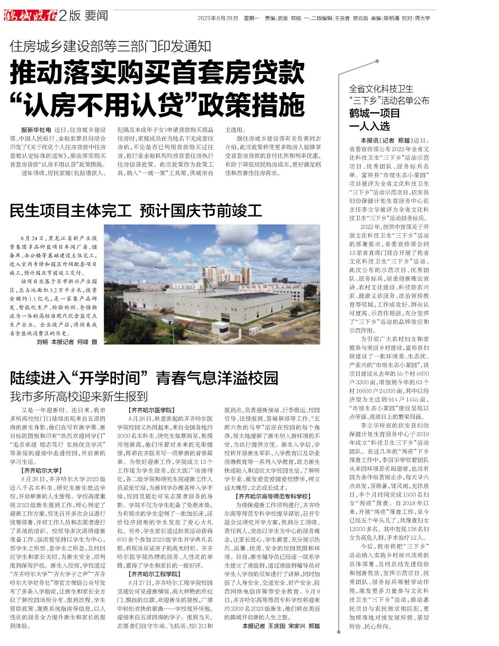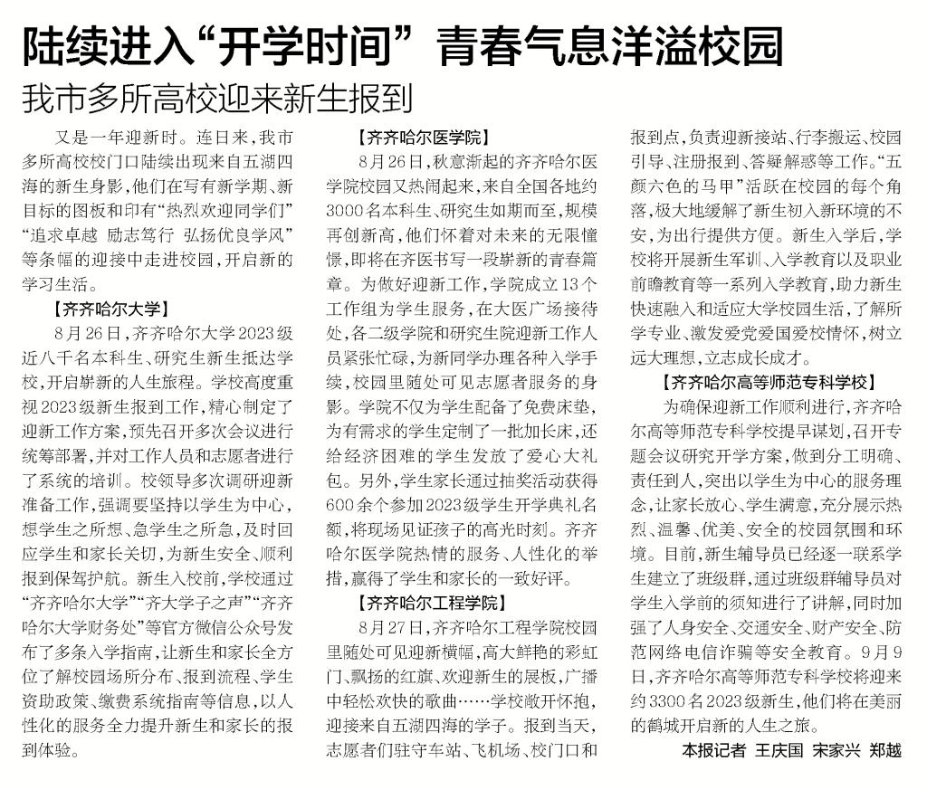 鹤城晚报要闻版报道伟德官网本科新生开学消息