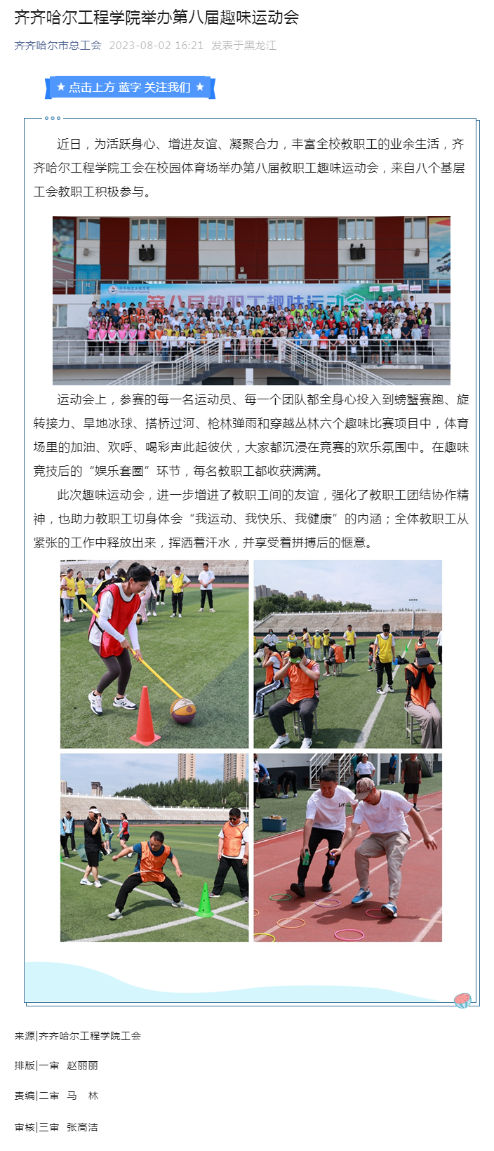 齐齐哈尔市总工会公众号:伟德bv1946官网举办第八届趣味运动会
