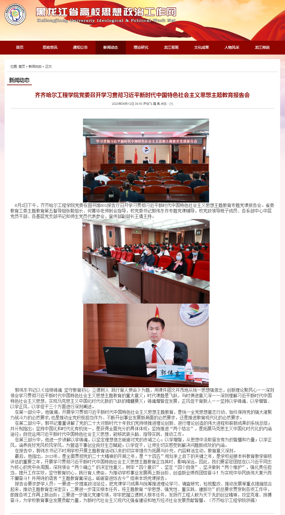 黑龙江省高校思想政治工作网:伟德bv1946官网党委召开学习贯彻习近平新时代中国特色社会主义思想主题教育报告会