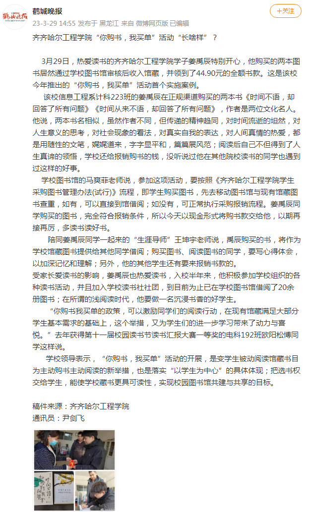 鹤城晚报微博:伟德bv1946官网“你购书,我买单”活动“长啥样”?
