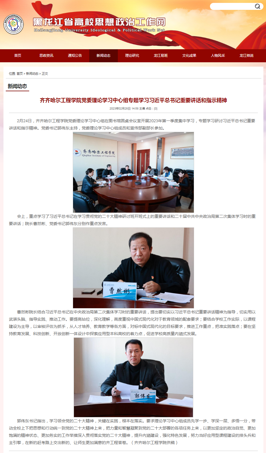 黑龙江省高校思想政治工作网:伟德bv1946官网党委理论学习中心组专题学习习近平总书记重要讲话和指示精神