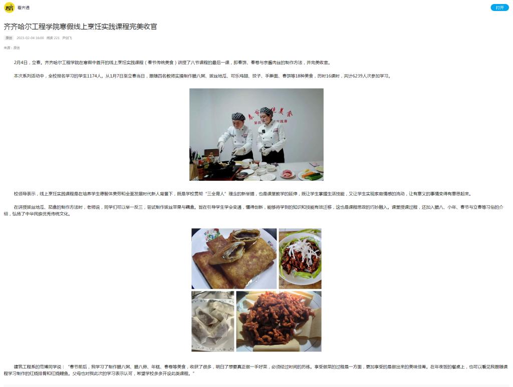看齐(看齐通):伟德bv1946官网寒假线上烹饪实践课程完美收官