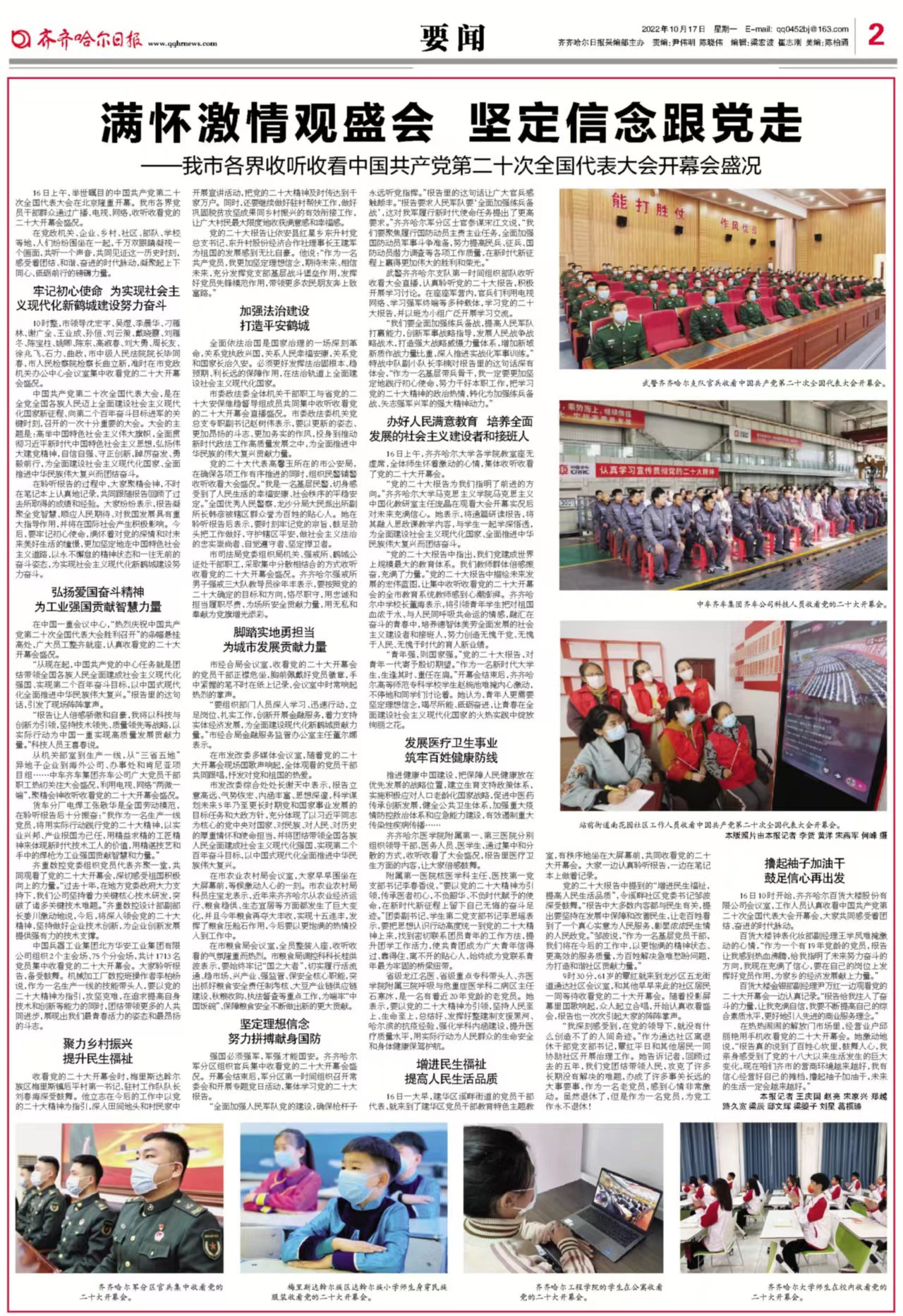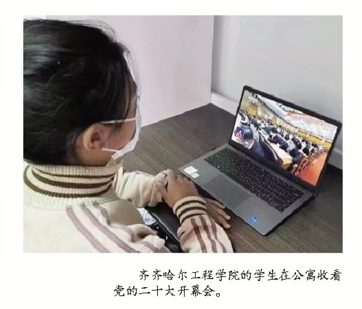 齐齐哈尔日报要闻版刊发伟德官网学生在公寓收看党的二十大开幕会电视直播照片