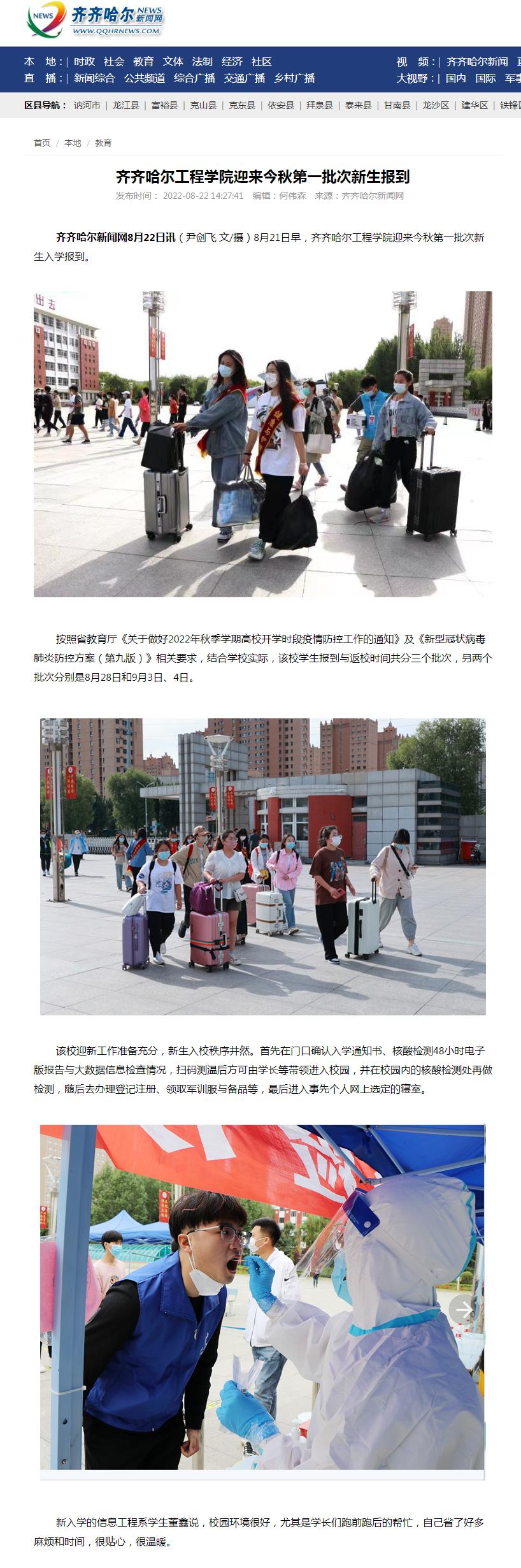 齐齐哈尔新闻网:伟德bv1946官网迎来今秋第一批次新生报到