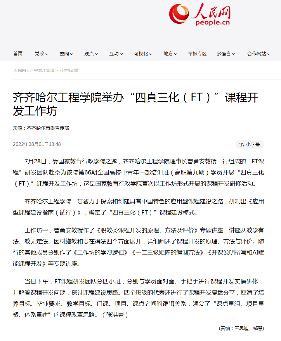 人民网:伟德bv1946官网举办“四真三化(FT)”课程开发工作坊
