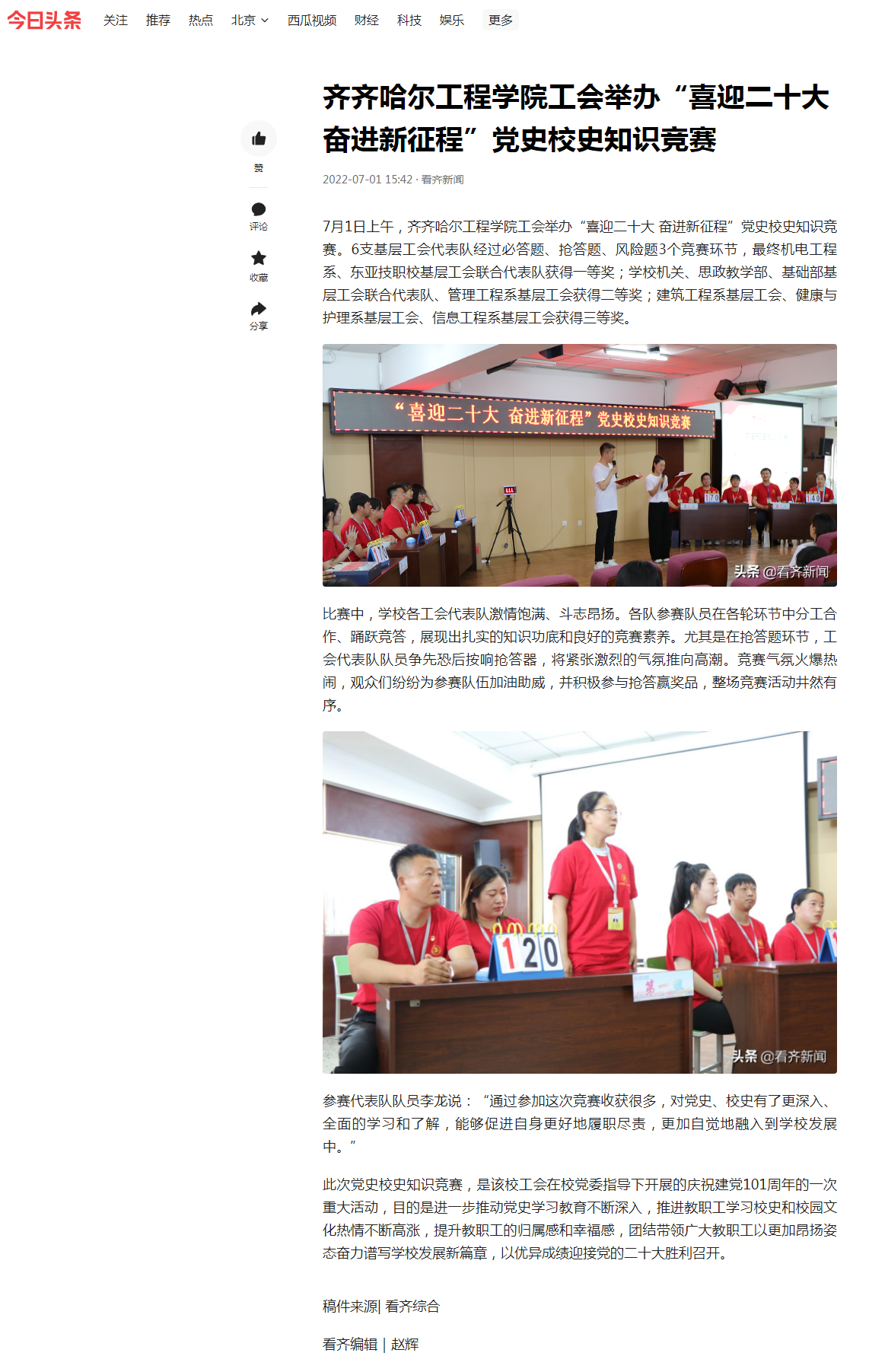 今日头条:伟德bv1946官网工会举办“喜迎二十大 奋进新征程”党史校史知识竞赛