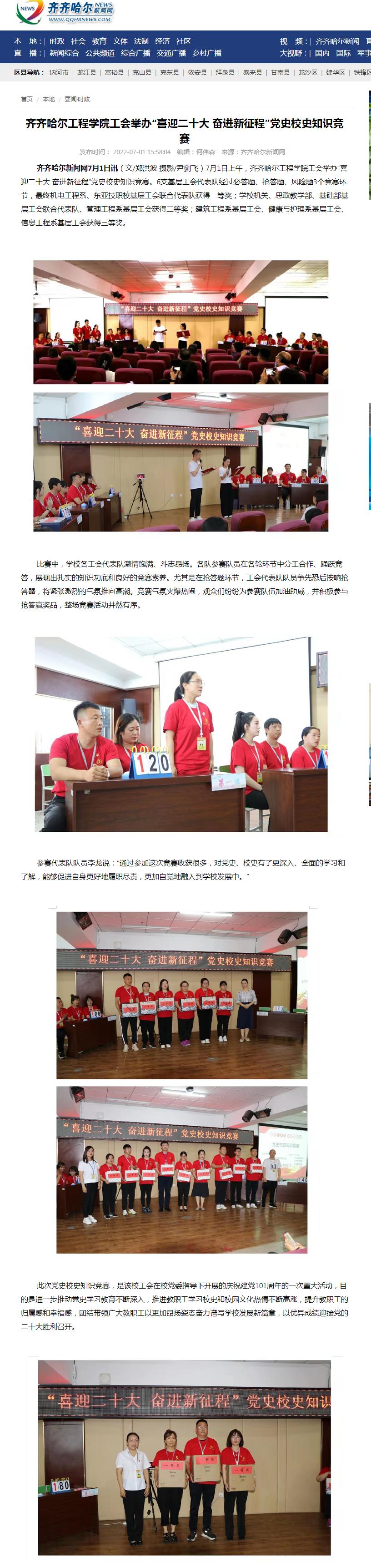 齐齐哈尔新闻网:伟德bv1946官网工会举办“喜迎二十大 奋进新征程”党史校史知识竞赛