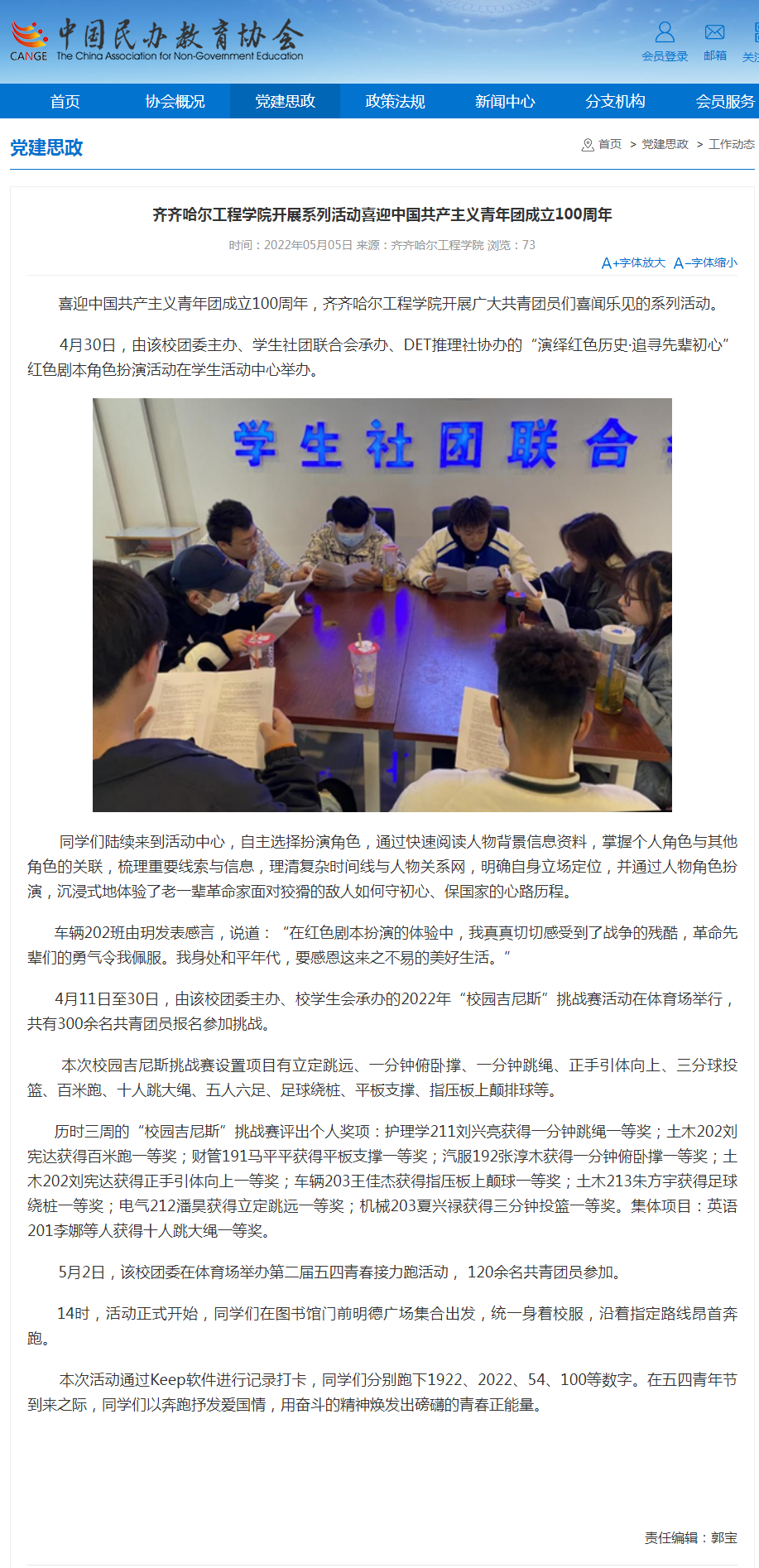 中国民办教育协会网:伟德bv1946官网开展系列活动喜迎中国共产主义青年团成立100周年