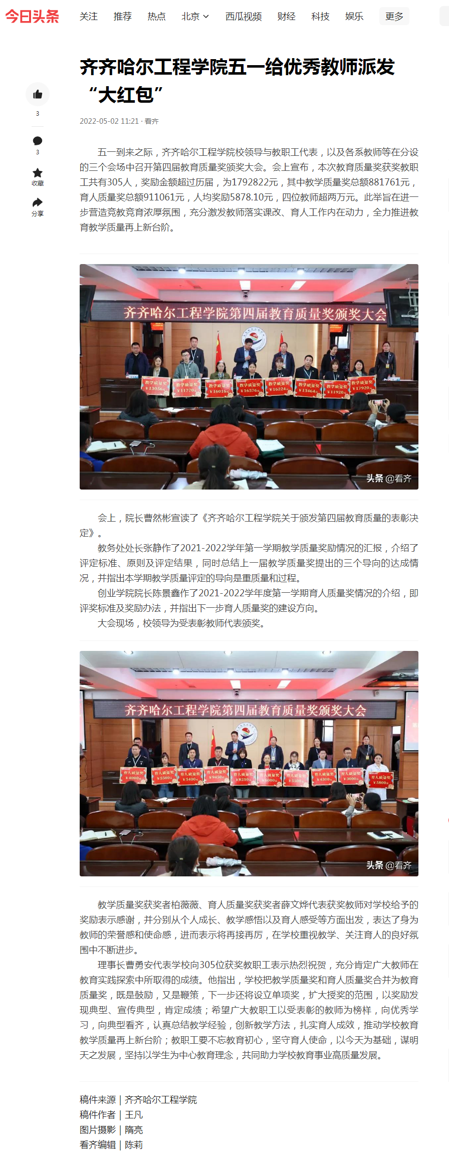 今日头条:伟德bv1946官网五一给优秀教师派发“大红包”