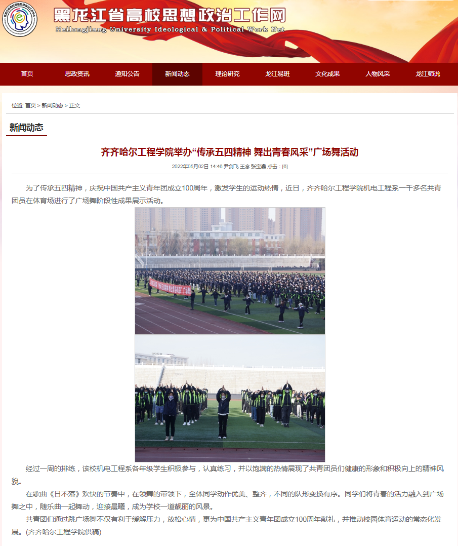 黑龙江省高校思想政治工作网:伟德bv1946官网举办“传承五四精神 舞出青春风采”广场舞活动