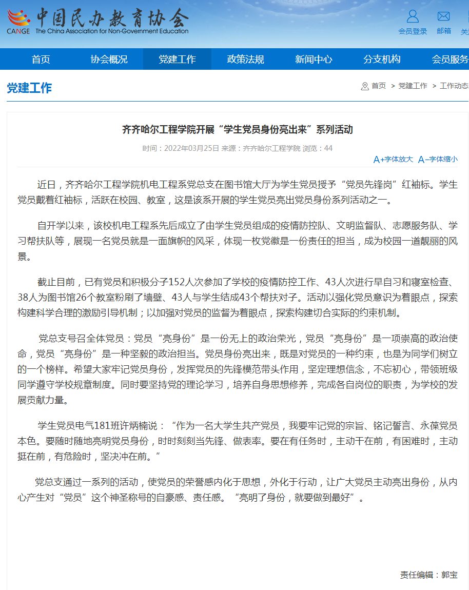 中国民办教育协会网:伟德bv1946官网开展“学生党员身份亮出来”系列活动
