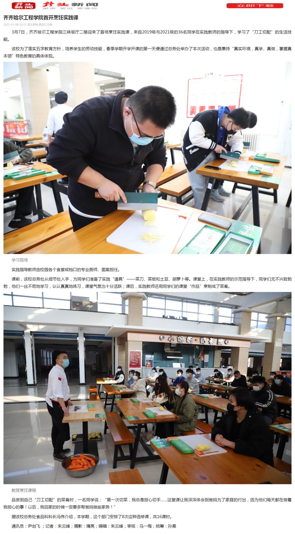 龙头新闻:伟德bv1946官网首开烹饪实践课