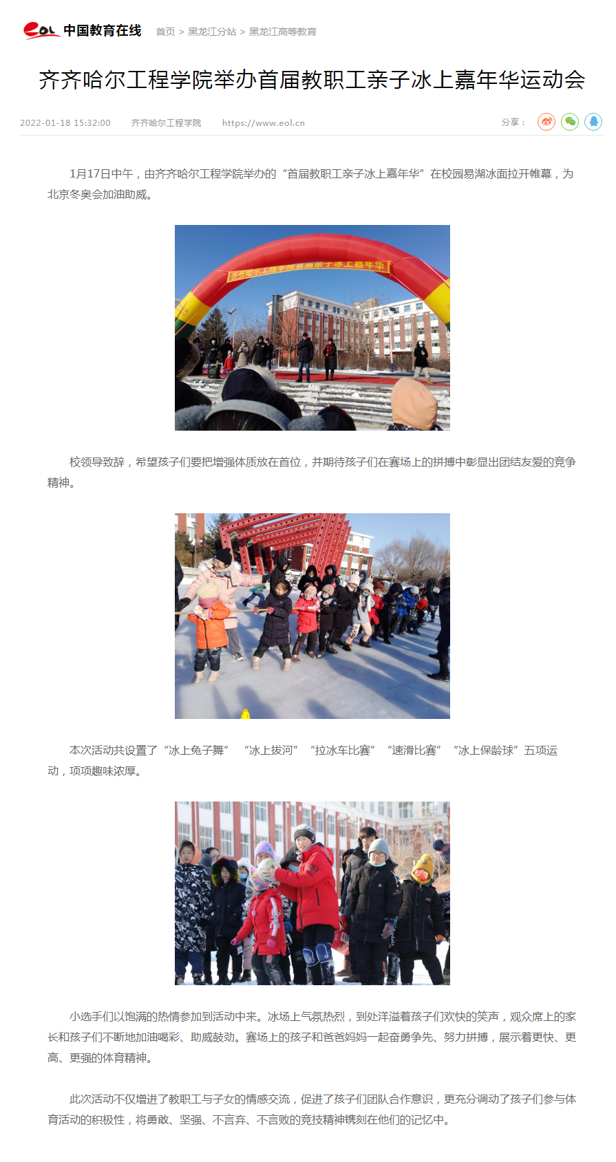 中国教育在线:伟德bv1946官网举办首届教职工亲子冰上嘉年华运动会