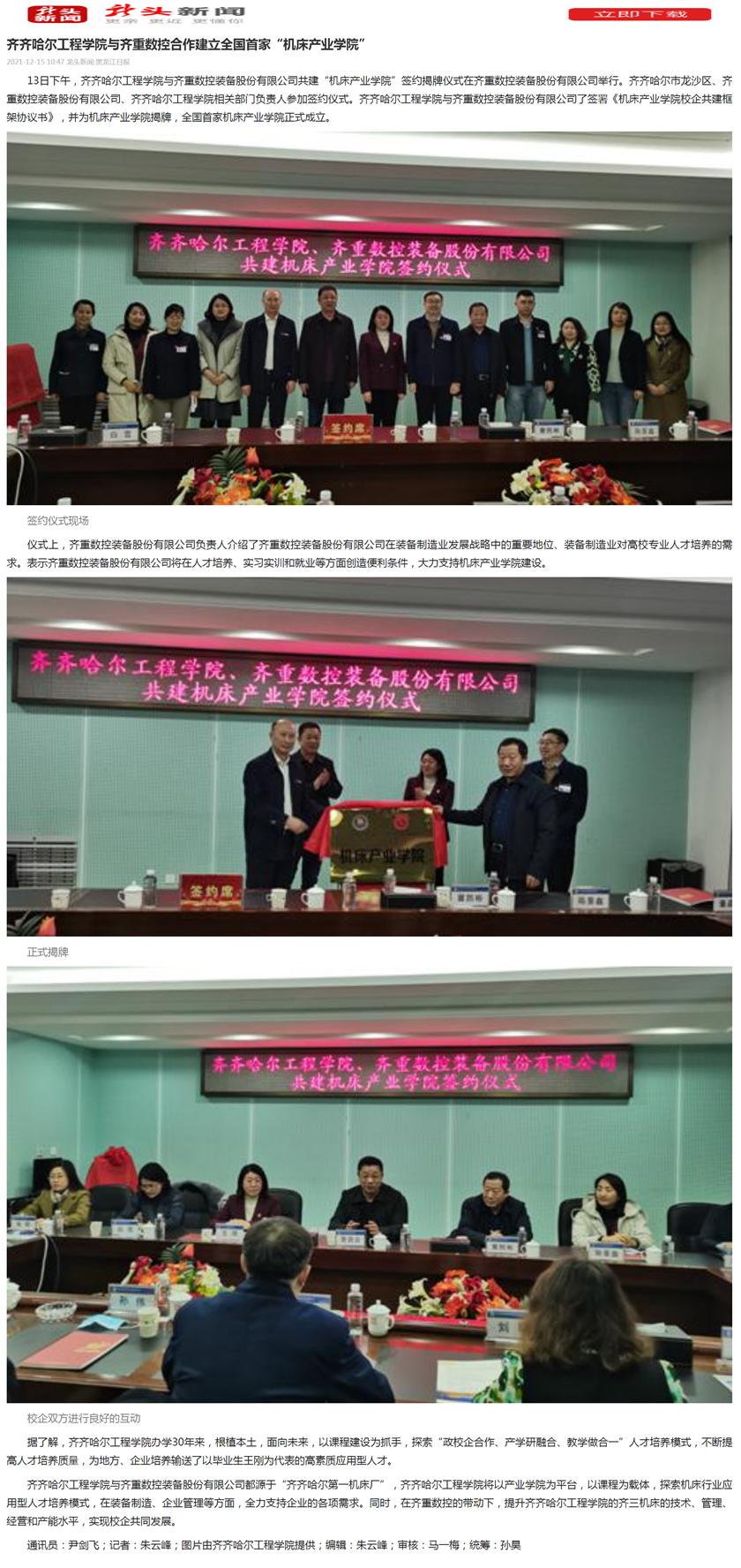 龙头新闻:伟德bv1946官网与齐重数控合作建立全国首家“机床产业学院”