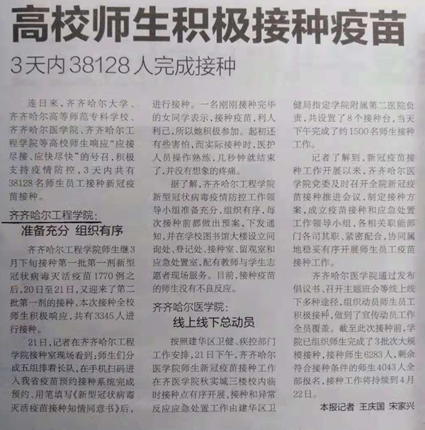 鹤城晚报报道伟德官网接种疫苗“准备充分 组织有序”