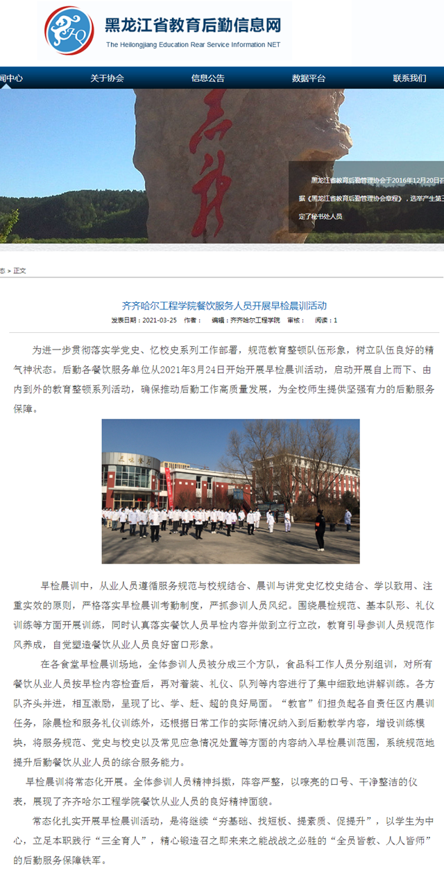 黑龙江省教育后勤信息网:伟德bv1946官网餐饮服务人员开展早检晨训活动