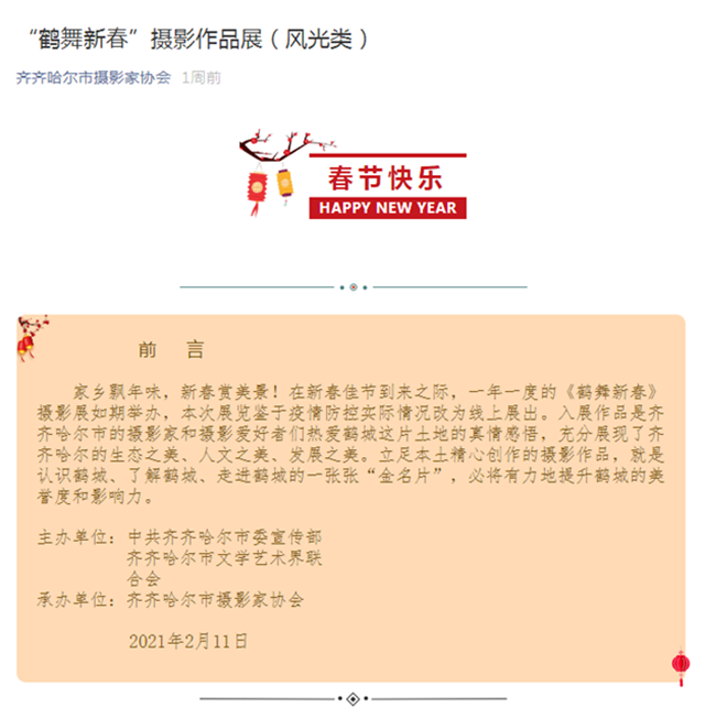 齐齐哈尔市摄影家协会:“鹤舞新春”摄影作品展▪美丽校园(学校易湖美景)
