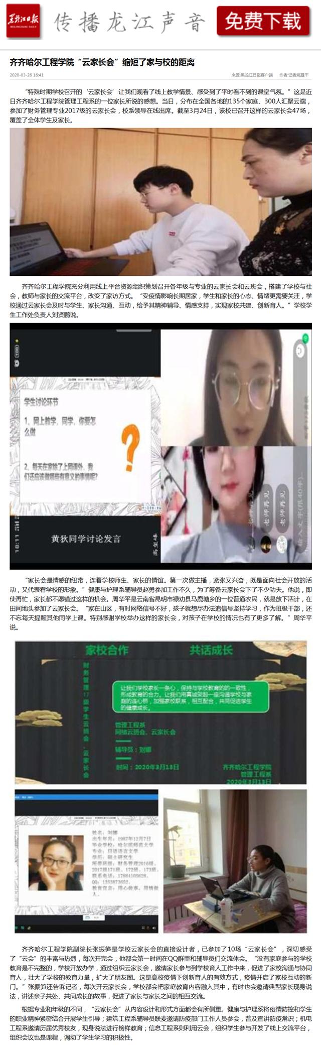黑龙江日报客户端:伟德bv1946官网“云家长会”缩短了家与校的距离