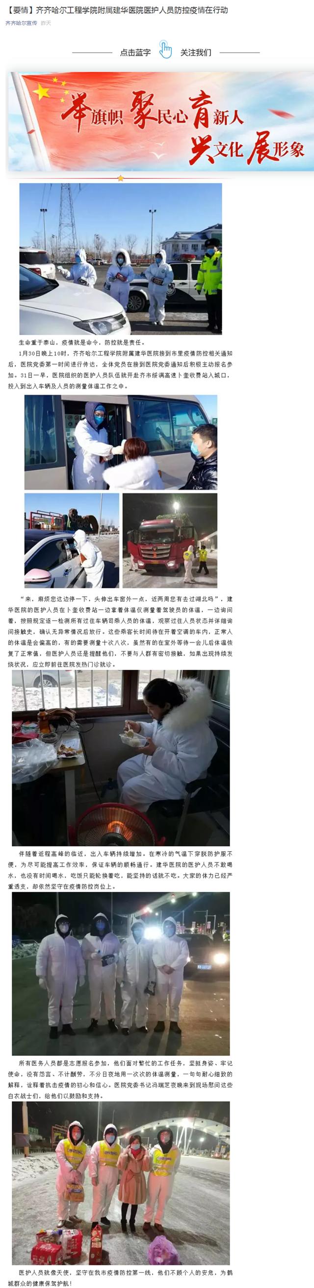 齐齐哈尔宣传《要情》:伟德bv1946官网附属建华医院医护人员防控疫情在行动
