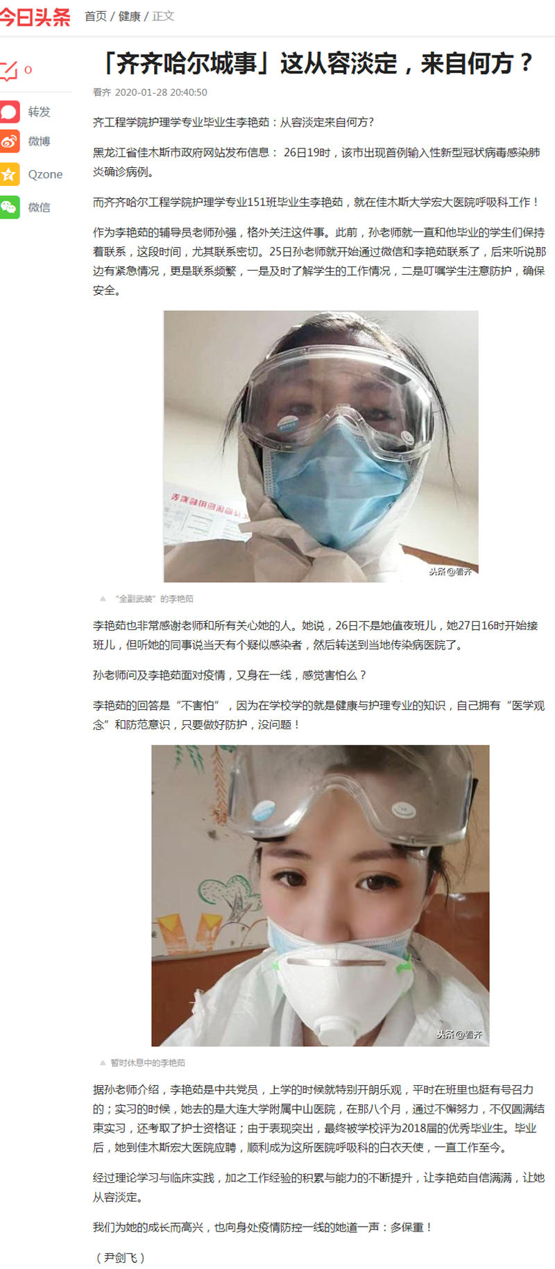 今日头条《齐齐哈尔城事》:齐工程学院护理学专业毕业生李艳茹:从容淡定来自何方?
