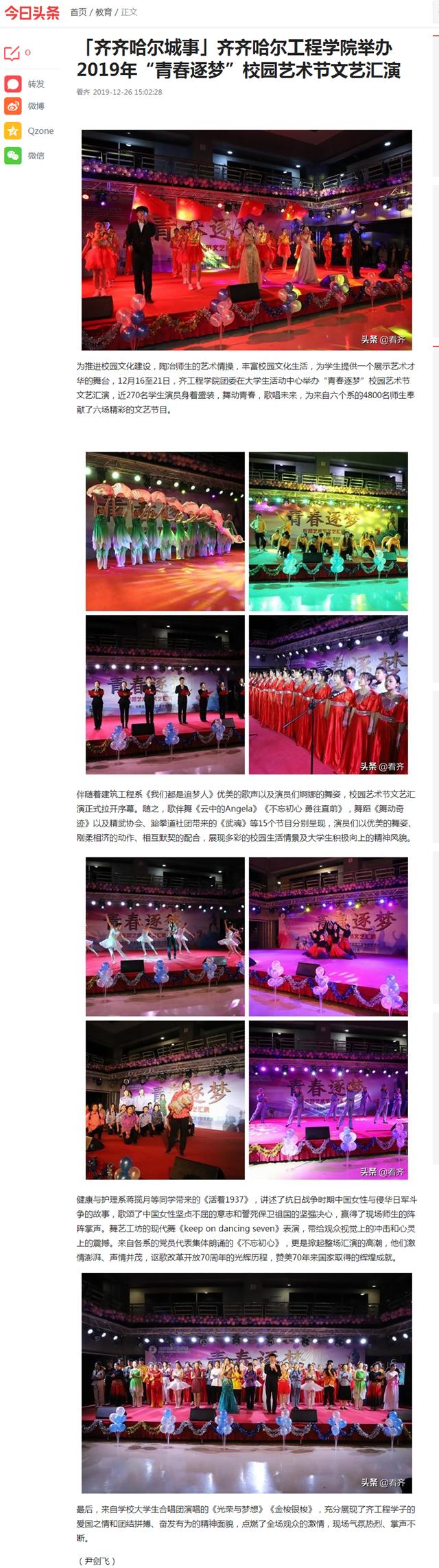 今日头条《齐齐哈尔城事》:伟德bv1946官网举办2019年“青春逐梦”校园艺术节文艺汇演