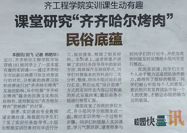 鹤城晚报:齐工程学院实训课生动有趣 课堂研究“齐齐哈尔烤肉”民俗底蕴